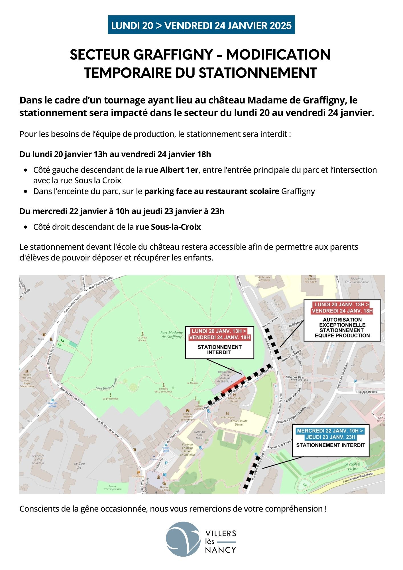 Secteur Graffigny, modification du stationnement du 20 janvier 2025 au 23 janvier 2025, rue Albert 1er et rue Sous-la-Croix